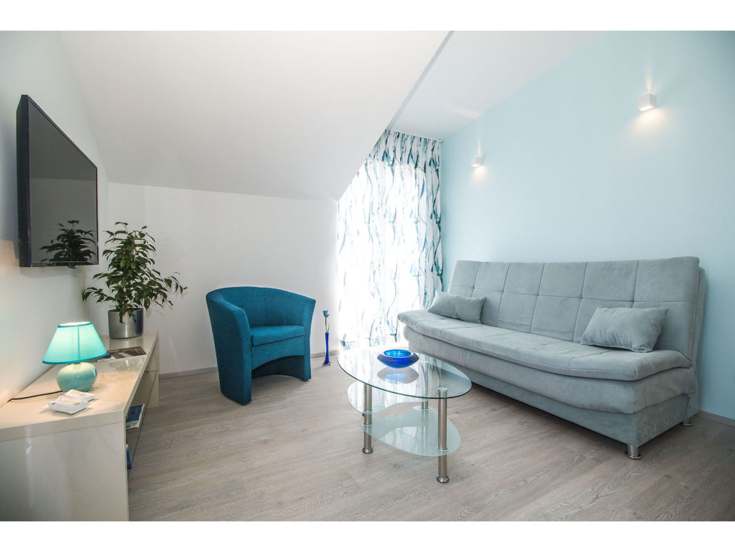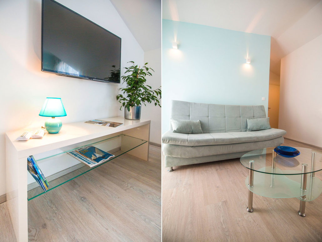 The design of the apartment is very modern, consisting of one bedroom with double bed, and a large living room.
